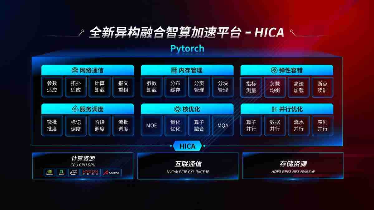 通过自研的服务层、、中间适配层、、、、以及调度编排算法,,,,采用数据并行、、模型并行等多种并行方式,,把并行计算任务进行有效的分解,,,使其分别由相应的软件栈和算力资源来承接。。。当GPU资源变化,,HICA可以实时动态调度计算子任务并调整模型拓扑和架构,,,,以充分聚合各种算力资源。。。